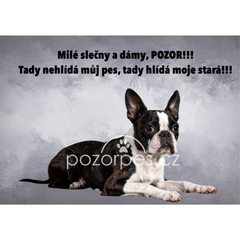 TEXT: Milé slečny a dámy POZOR!!! Tady nehlídá můj pes, tady hlídá moje stará!!!